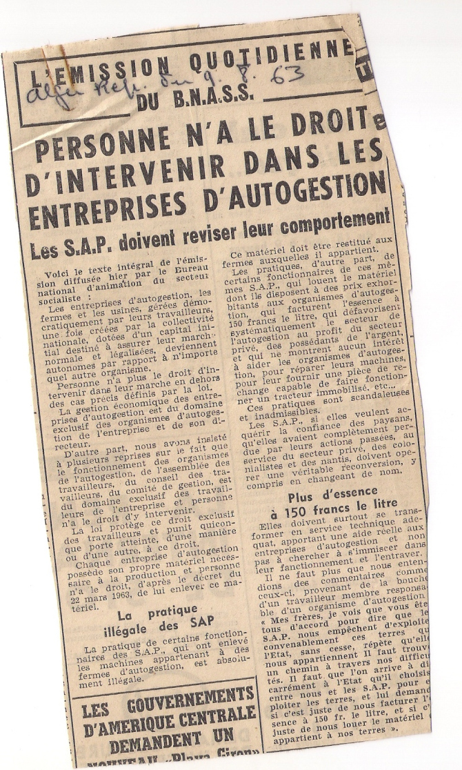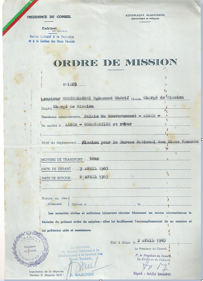 كانت المشاكل والقضايا المحيطة بإدارة وتوزيع العقارات الشاغرة مهمة للغاية في السنوات الأولى من الاستقلال لدرجة أن رئاسة الجمهورية عهدت إلى محمد الشريف بمسؤولية استضافة برنامج إذاعي يومي يهدف في المقام الأول إلى تنبيه وحظر أولئك الذين يريدون بشكل خاص الاستيلاء على الأراضي ووسائل الإنتاج بشكل غير قانوني، وثانيًا السماح للمستمعين بفهم النطاق الاشتراكي للقرارات المتخذة بشأن هذا الموضوع