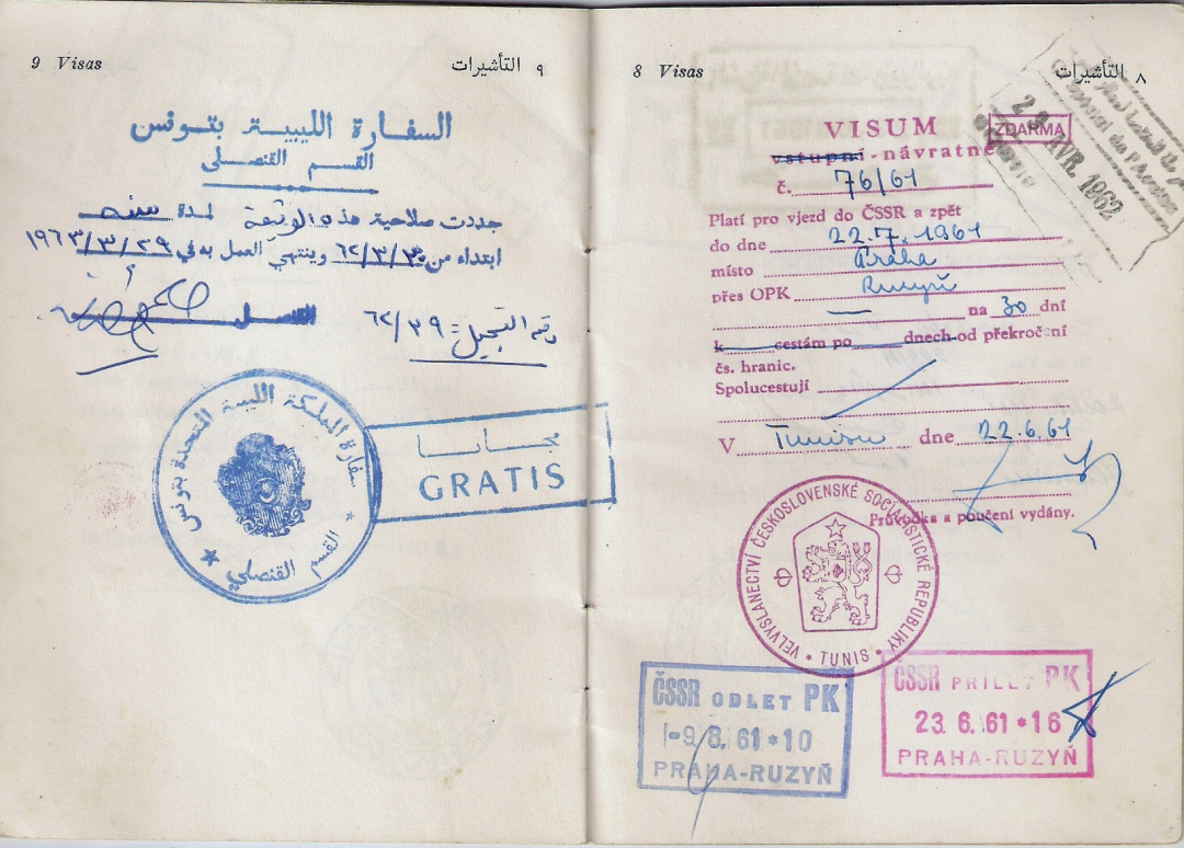 من تونس بطلب من الحكومة المؤقتة سلمت له السلطات الليبية جواز سفر في1961 كانت له مهمة إلى كل من تشيكوسلوفاكيا والمجر في نفس السنة وفي نهاية شهر أفريل من سنة 1962 اي أشهر قليلة قبل استقلال