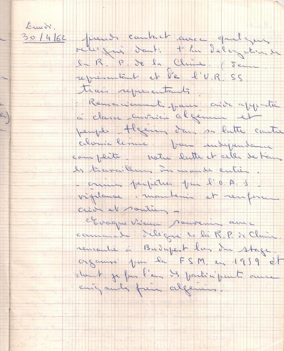 كان يؤدي مهمة عاجلة إلى "الرفاق" الشيوعيين والنقابيين الأوروبيين الذين دعموا حرب التحرير الوطني، وهذا ما دفعه إلى القيام برحلة قصيرة إلى أوروبا في عام 1959