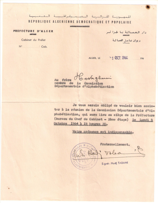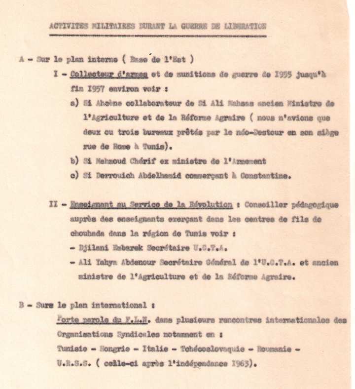 بعد سنوات قليلة من الاستقلال، كتب على الورق بطريقة منهجية جميع أنشطته داخل جبهة التحرير الوطني