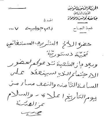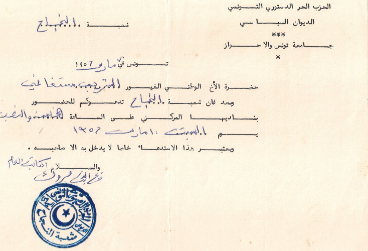 شهادة شعبة منزل تميم لحزب الدستور تعترف بنضال محمد الشريف مستغانمي من أجل استقلال تونس