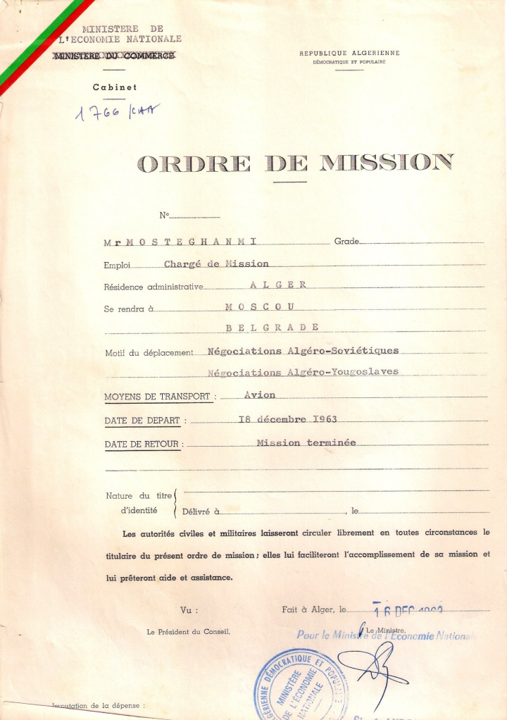 المهمة المستعجلة إلى الاتحاد السوفييتي ويوغسلافيا في سنة 1963 من أجل طلب