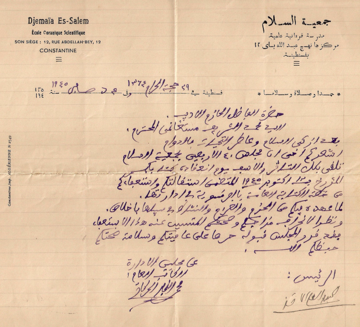 P.P.A الماضي ، كمسؤول في قسنطينة على حفظ أرشيف حزب الشعب الجزائري
