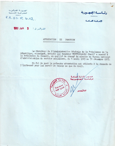 بعد سنوات قليلة من الاستقلال، كتب على الورق بطريقة منهجية جميع أنشطته داخل جبهة التحرير الوطني