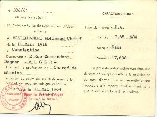 في ذلك الوقت، كان كل ناشط جزائري يساهم حسب إمكانياته والفرص المتاحة له. وقد شهد محمود شريف، قائد القاعدة العسكرية في شرق الجزائر (وزير التسليح في حكومة الجمهورية الجزائرية لاحقًا)، عام ١٩٥٨ بتلقيه ٤٠٠ خرطوشة