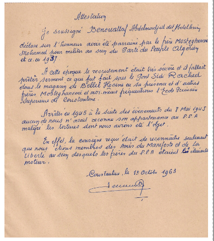 P.P.A الماضي ، كمسؤول في قسنطينة على حفظ أرشيف حزب الشعب الجزائري